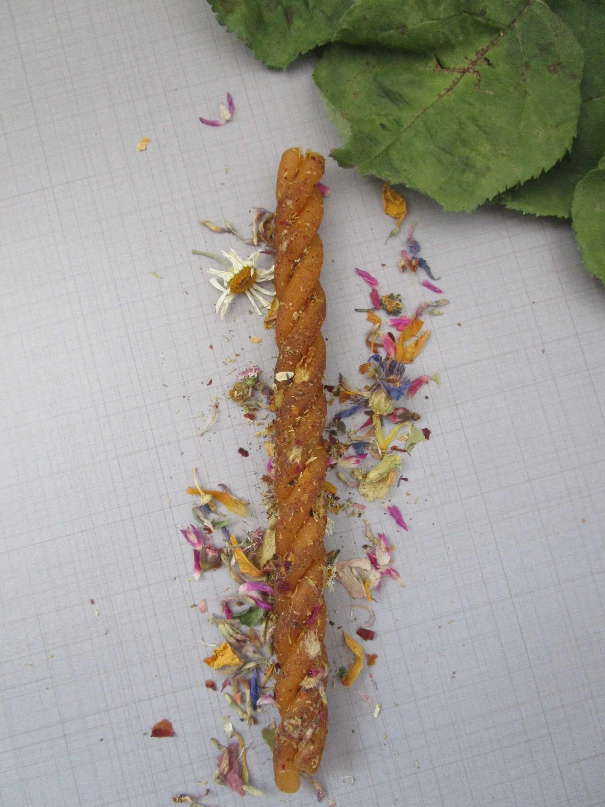 Eine wundervolle gelbe Bienenwachskerze mit Ölen, Kräutern und Blüten liebevoll handgefertigt nur für DICH.