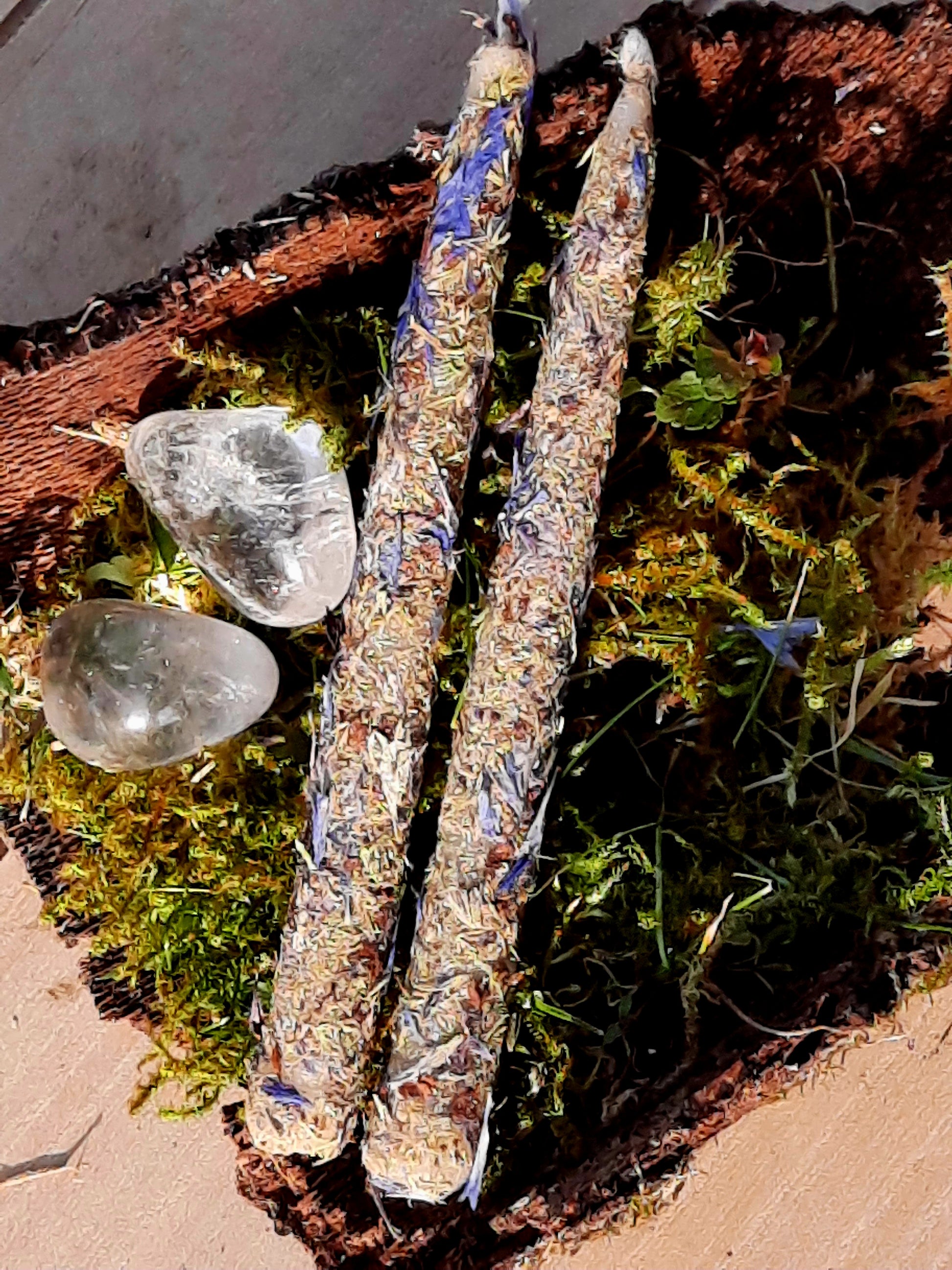 Es handelt sich hier um keine normale handelsübliche Kerze. Stellen Sie sich bitte auf einen feuerfesten Untergrund und lassen Sie sie NIE unbeaufsichtigt stehen. Durch die Öle und Kräuter kann es zu Funkenflug kommen, auch sicher auch die Umgebung der Kerze.