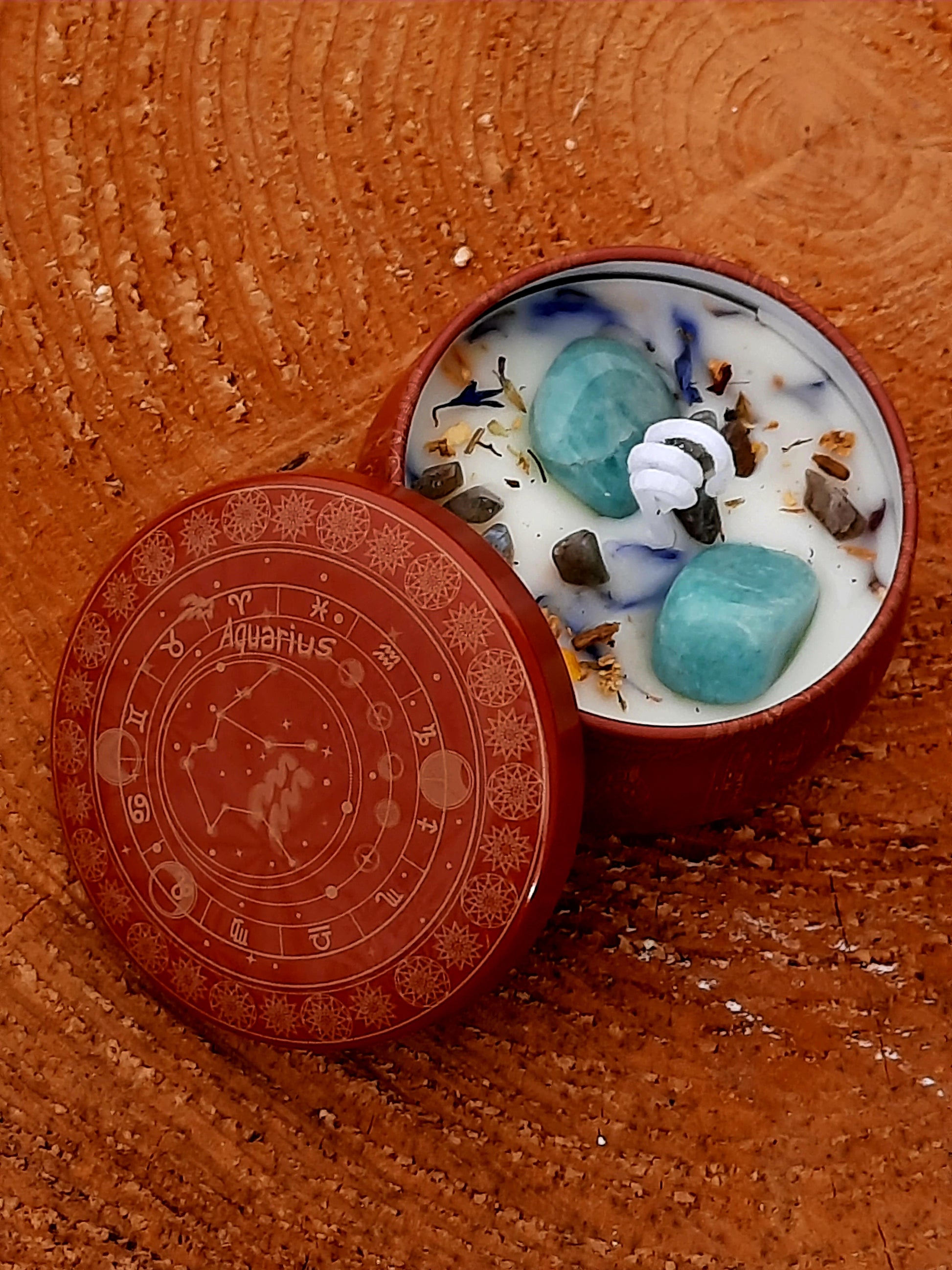 Die Kerze wirkt mit den Steinen des Wassermannes auf das Energiezentrum deines Körpers und schenkt dir Energie für deinen Alltag.
