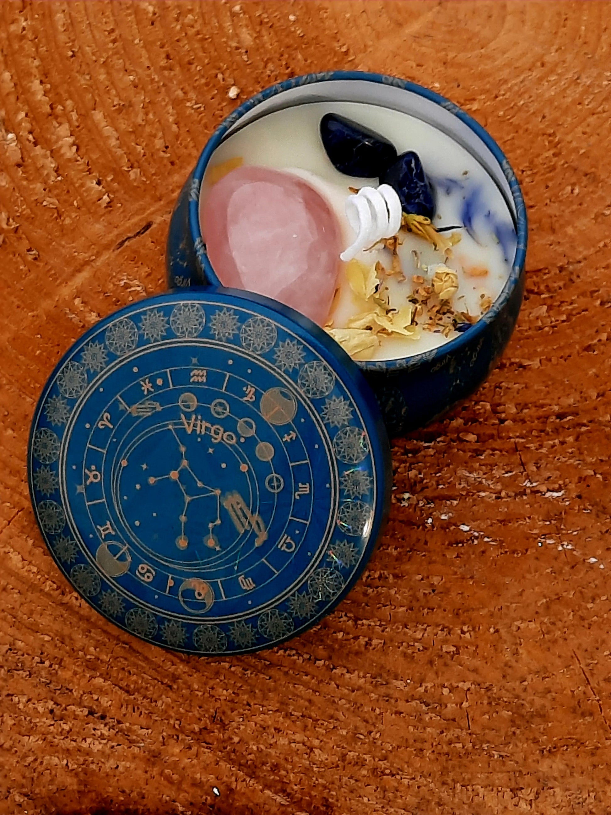 Die Kerze wirkt mit den Steinen der Jungfrau auf das Energiezentrum deines Körpers und schenkt dir Energie für deinen Alltag.