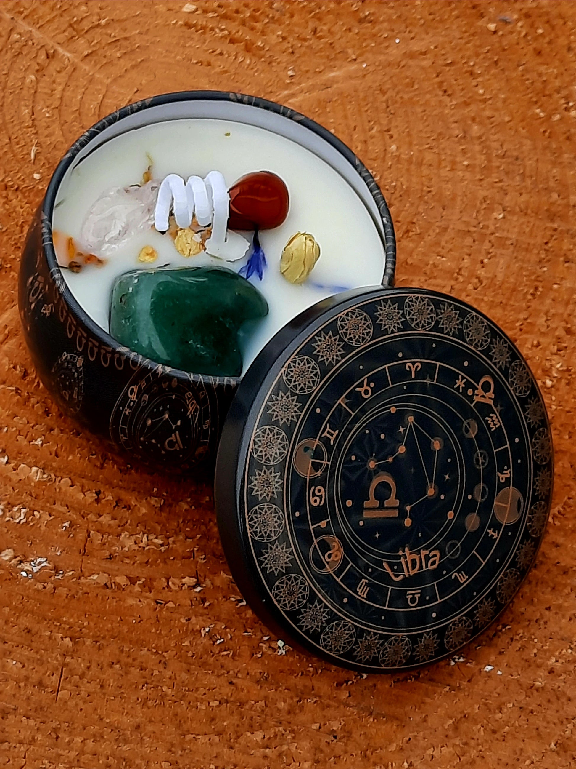 Die Kerze wirkt mit den Steinen der Waage auf das Energiezentrum deines Körpers und schenkt dir Energie für deinen Alltag.