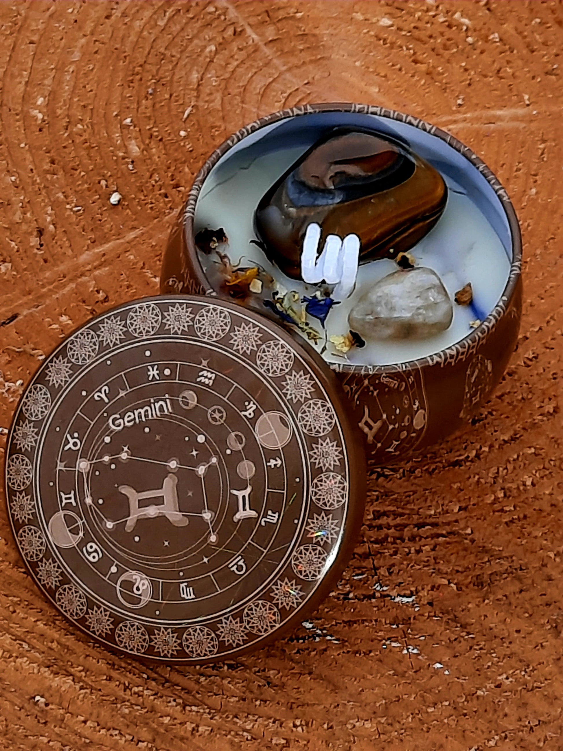 Die Kerze wirkt mit den Steinen des Zwillings auf das Energiezentrum deines Körpers und schenkt dir Energie für deinen Alltag.